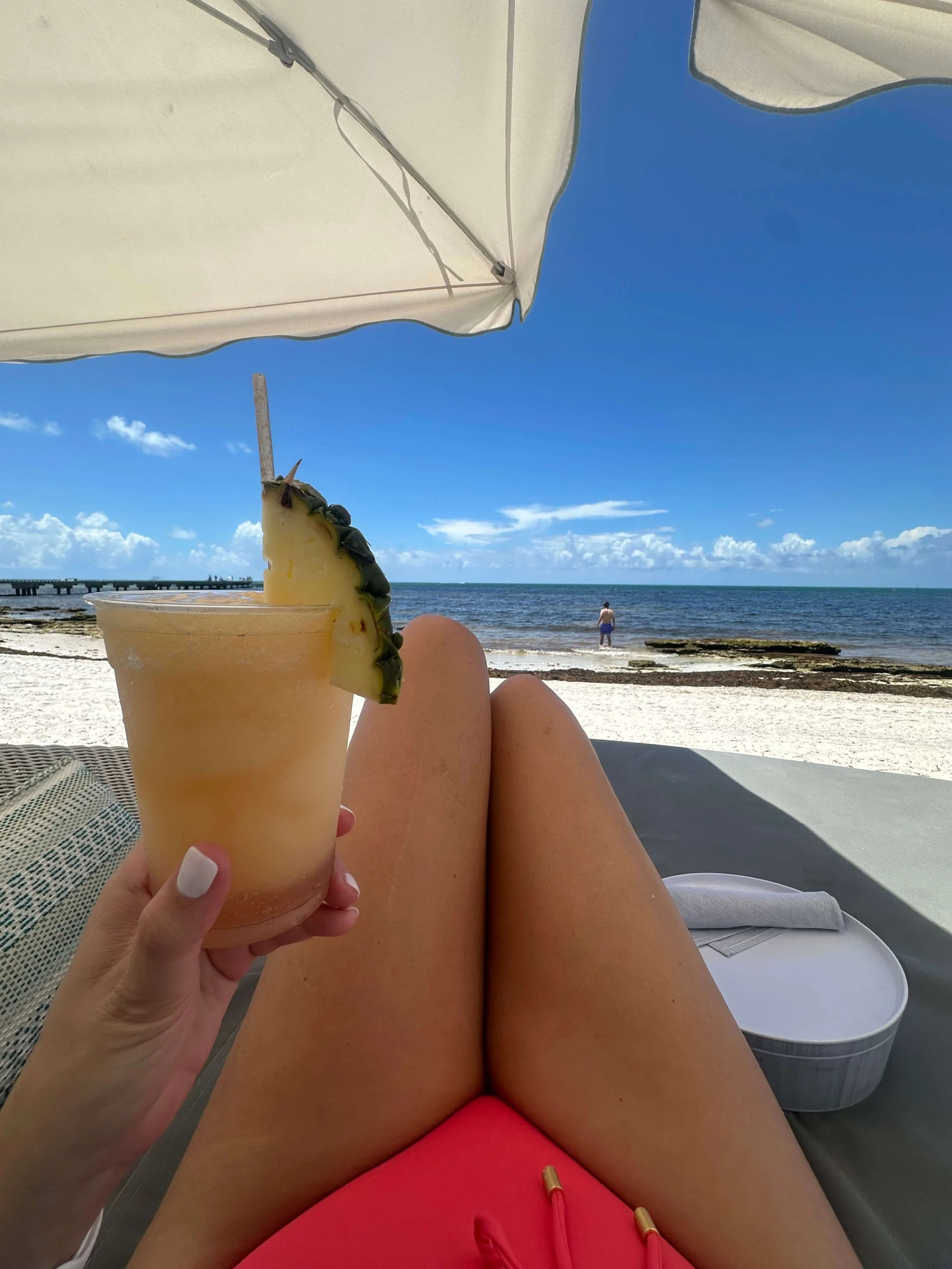 The yummiest peach frose delivered straight to your oceanfront lounger.